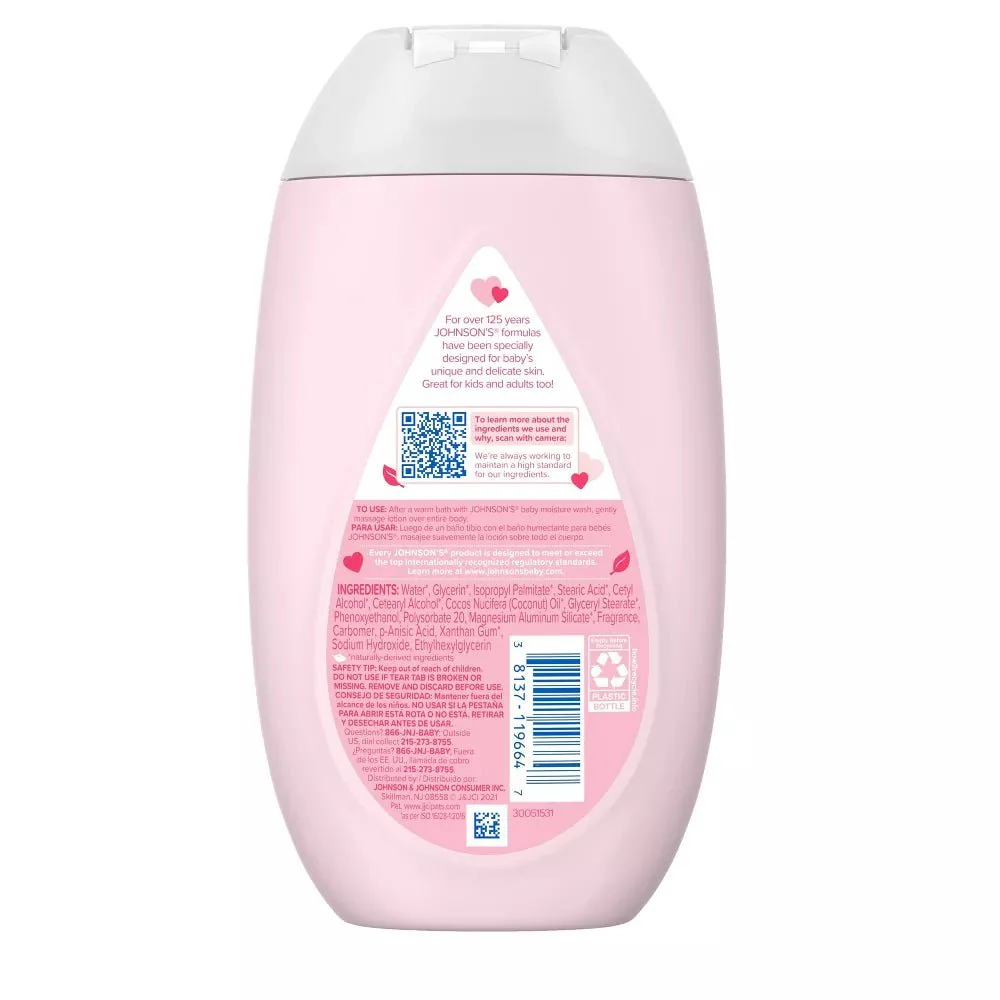 Nourish your little one’s skin with Johnson’s Pink Baby Lotion with coconut oil. Gentle enough for babies and suitable for the whole family, this pink baby lotion with the naturally derived ingredient coconut oil hydrates baby’s dry, delicate skin. The lotion is specially formulated to moisturize to help maintain baby’s healthy-looking skin. Dermatologist- and pediatrician-tested, the improved formula of this pink baby body lotion is designed with input from parents like you. It is hypoallergenic, free of parabens, phthalates and dyes and is 100% gentle and mild. Johnson’s Baby Lotion can be used as part of a regular skin care routine by massaging into skin after a bath or any time baby has dry skin.