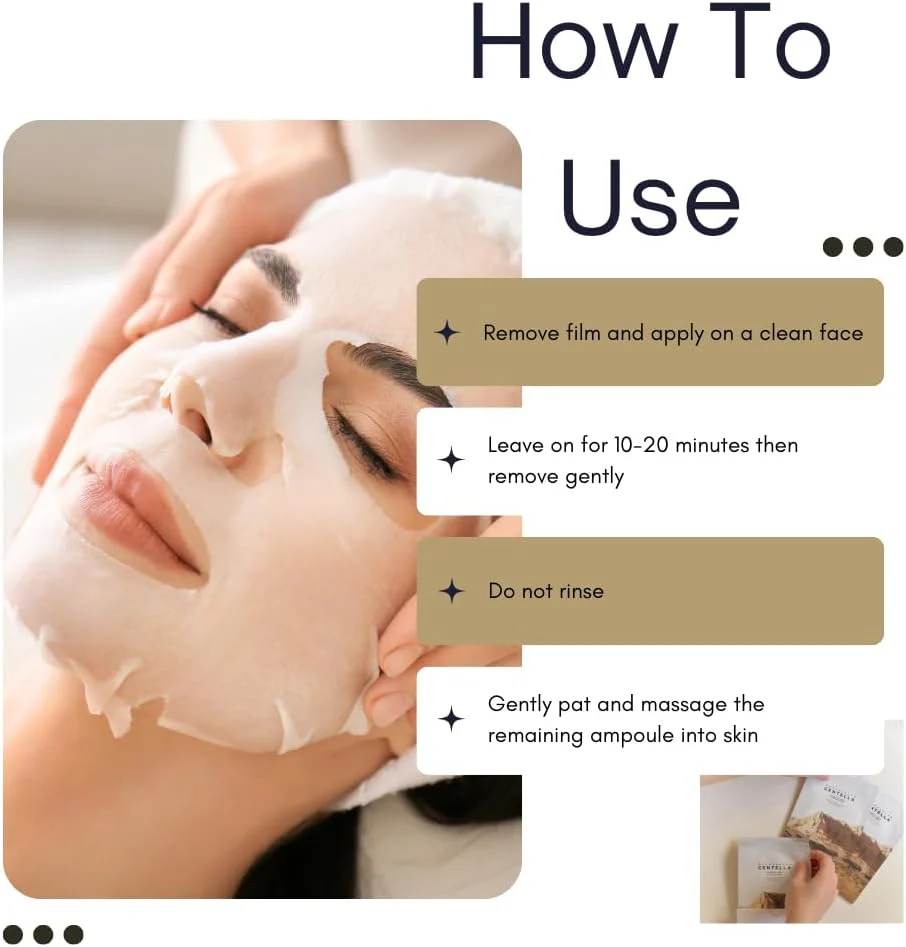 • Peel off the film and apply the mask to the skin that has been cleansed and toned.